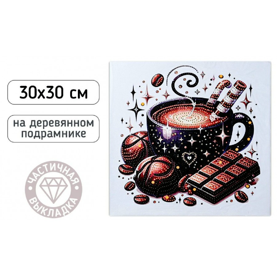 Алмазная мозаика КОФЕ, 30x30 см, деревянный подрамник, холст, частичная выкладка, термоусадочная плёнка