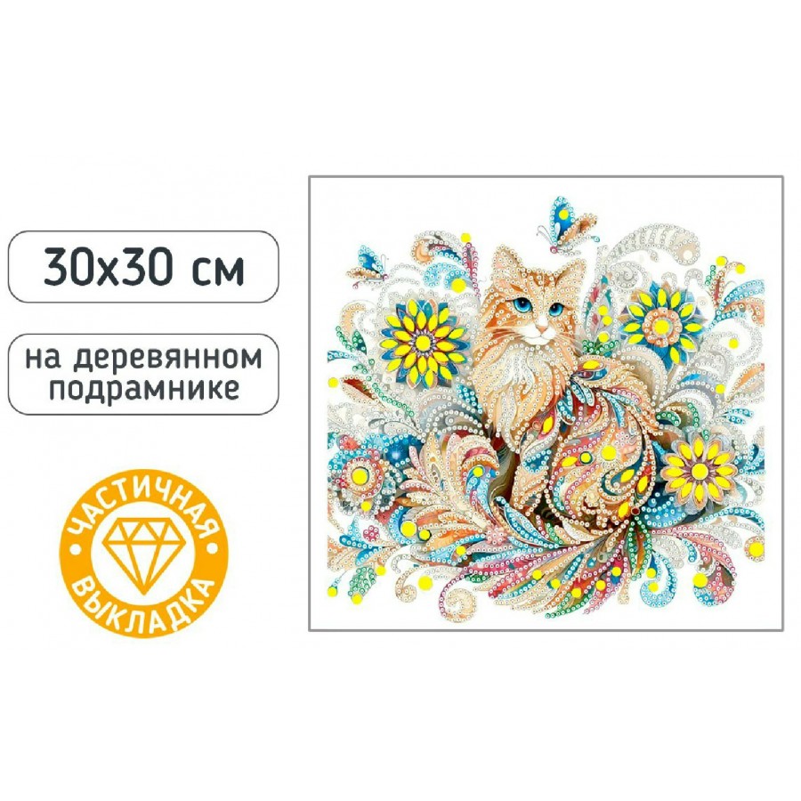 Алмазная мозаика КОШКА, 30x30 см, деревянный подрамник, частичная выкладка, термоусадочная плёнка