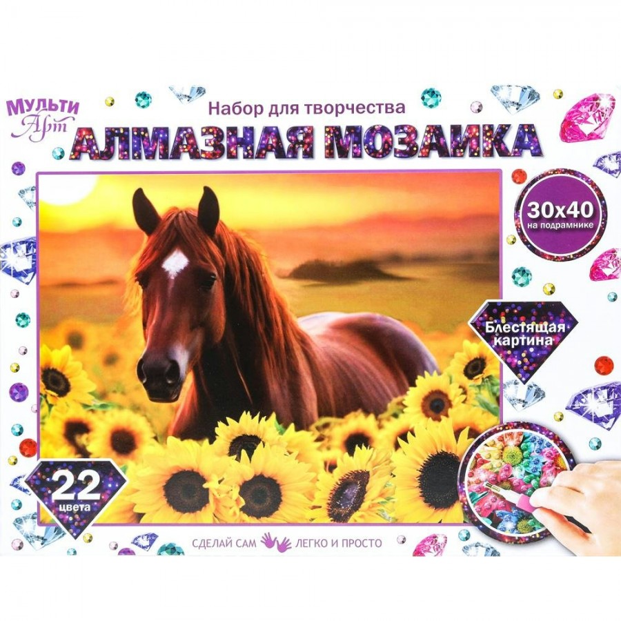 Набор для детского творчества – алмазная мозаика «Лошадь в подсолнухах» ТМ «Мульти Арт» - отличный подарок для ребёнка, который будет способствовать развитию его творческих способностей.