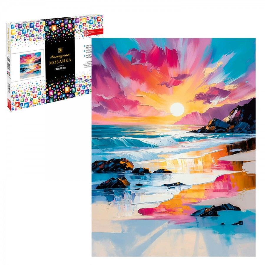 Алмазная мозаика (набор для творчества) арт. 70849 / 25 МОРЕ, размер: 30x40 см, (26 цветов страз, холст на подрамнике с напечатанной картиной, покрытый клеевым слоем и защитной пленкой, пакеты со стразами, стилус, лоток для страз, силикон для страз, клей, подвесы для подрамника, пинцет металлический, схема, дополнительные пакеты с zip-молнией, стикеры для нумерации zip-пакетов в комплекте, форма страз: квадратная, тип выкладки: полная, картонная коробка)