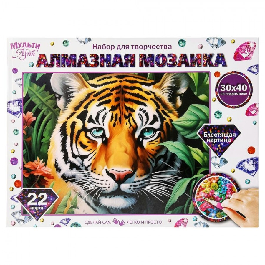 Мозаика алмазная холст на подрамнике 30х40 Тигр 22 цвета, полная выкладка АМ30X40-115956 МультиАрт