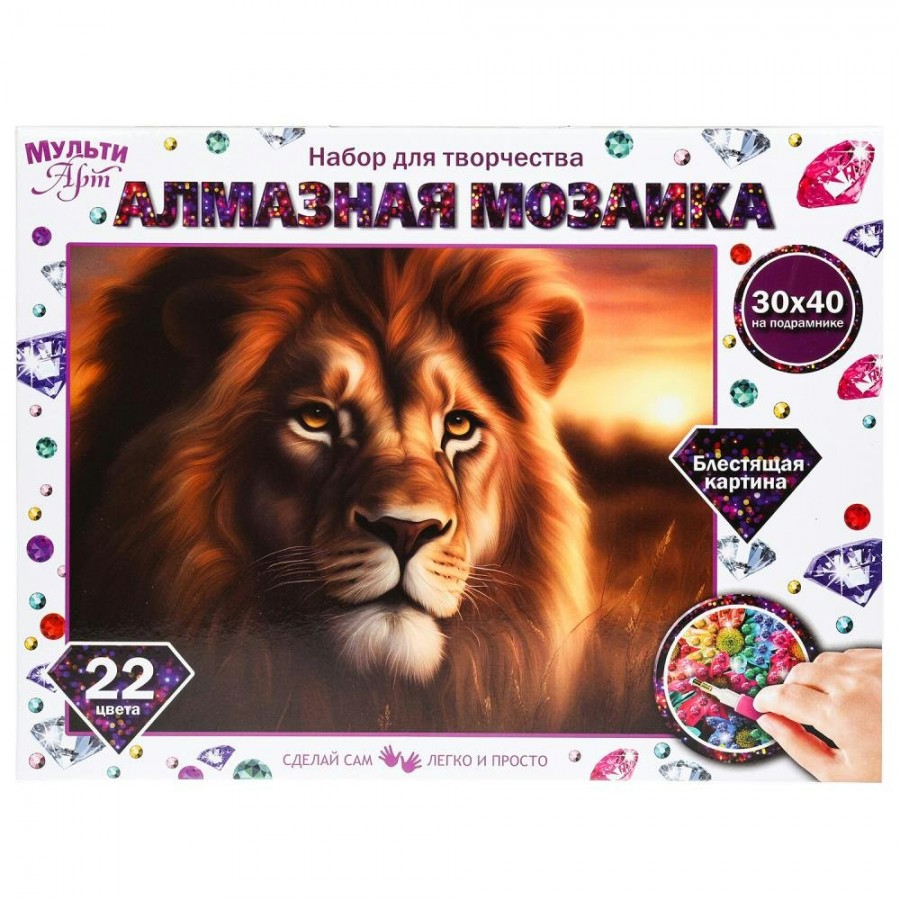 Набор для детского творчества – алмазная мозаика «Царь зверей» ТМ «Мульти Арт» - отличный подарок для ребёнка, который будет способствовать развитию его творческих способностей.