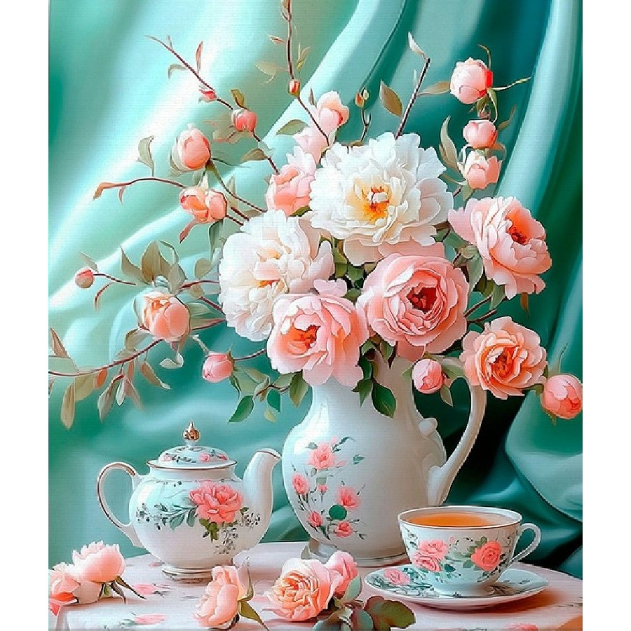 Мозаика алмазная холст на подрамнике 40х50 Чайная гармония полная выкладка, 30 цветов НД-1292 Рыжий кот