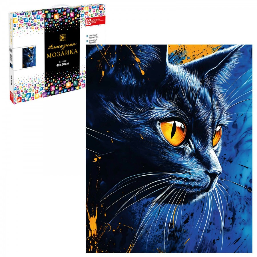 Алмазная мозаика (набор для творчества) арт. 70862 / 16 СИНИЙ КОТ, размер: 40x50 см, (25 цветов страз, холст на подрамнике с напечатанной картиной, покрытый клеевым слоем и защитной пленкой, пакеты со стразами, стилус, лоток для страз, силикон для страз, клей, подвесы для подрамника, пинцет металлический, схема, дополнительные пакеты с zip-молнией, стикеры для нумерации zip-пакетов в комплекте, форма страз: квадратная, тип выкладки: полная, картонная коробка с ручкой)