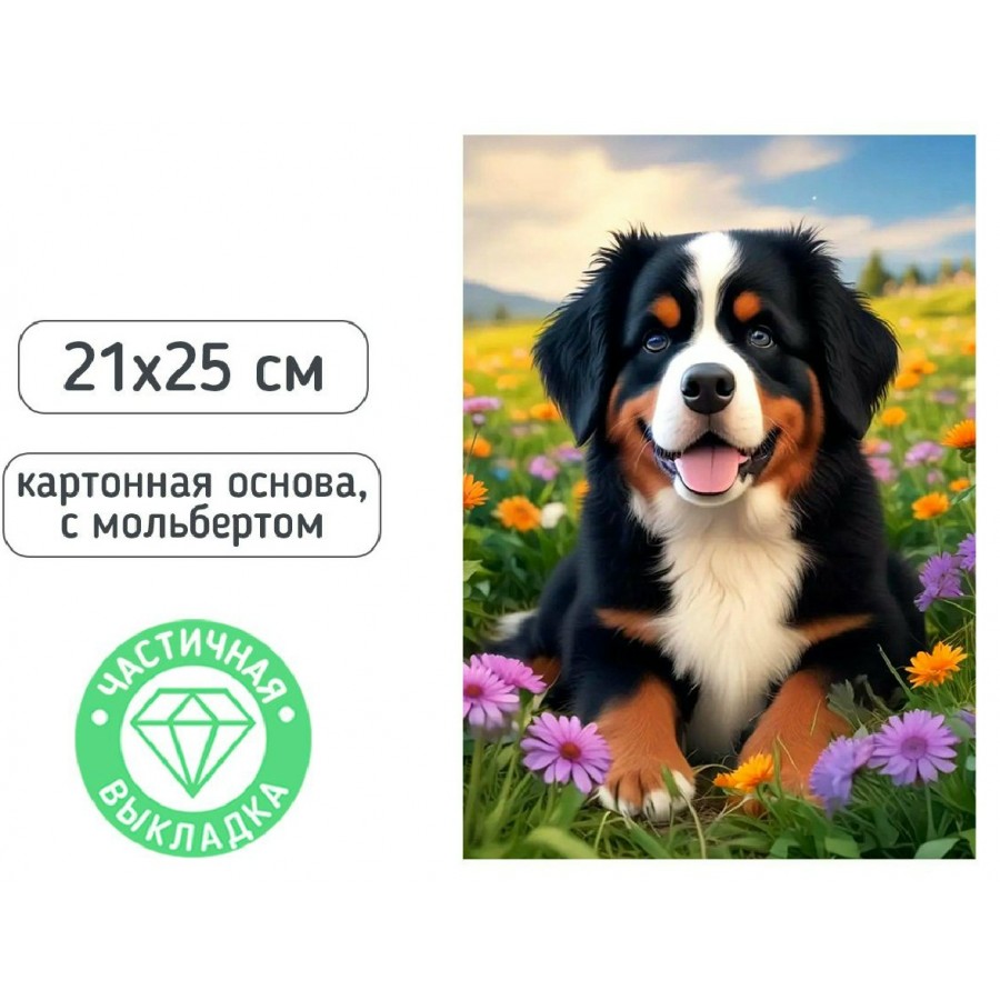 Алмазная мозаика с мольбертом ЩЕНОК, 21х25см, 1 дизайн, частичная выкладка, ОПП-упаковка.