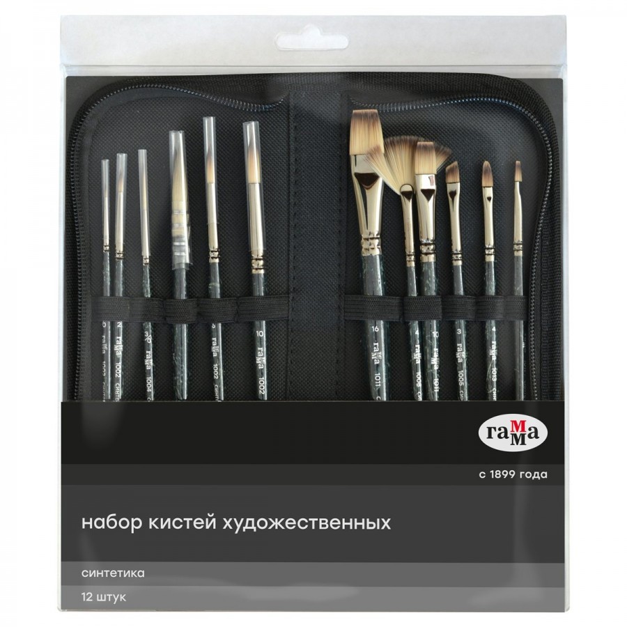 Набор кистей 12шт синтетика, тканевый пенал 1001212 Гамма 12/48
