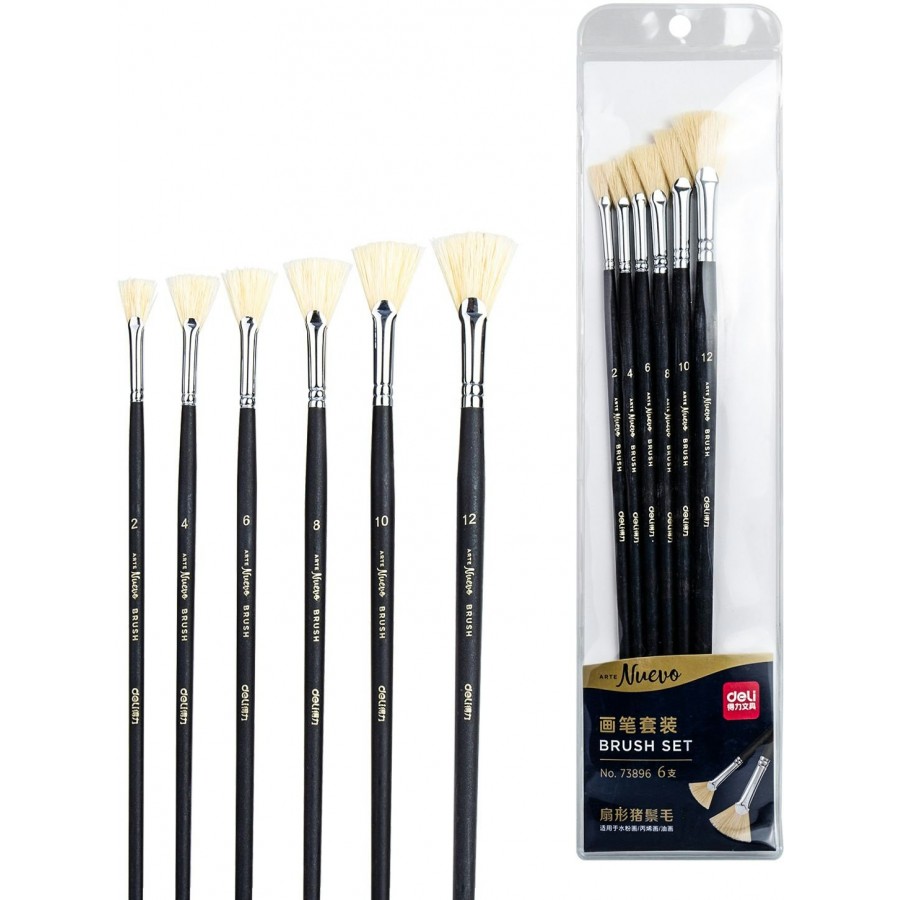 Набор кистей 6шт синтетика Arte Nuevo плоские деревянные лакированные ручки 1366246 Deli 12/144