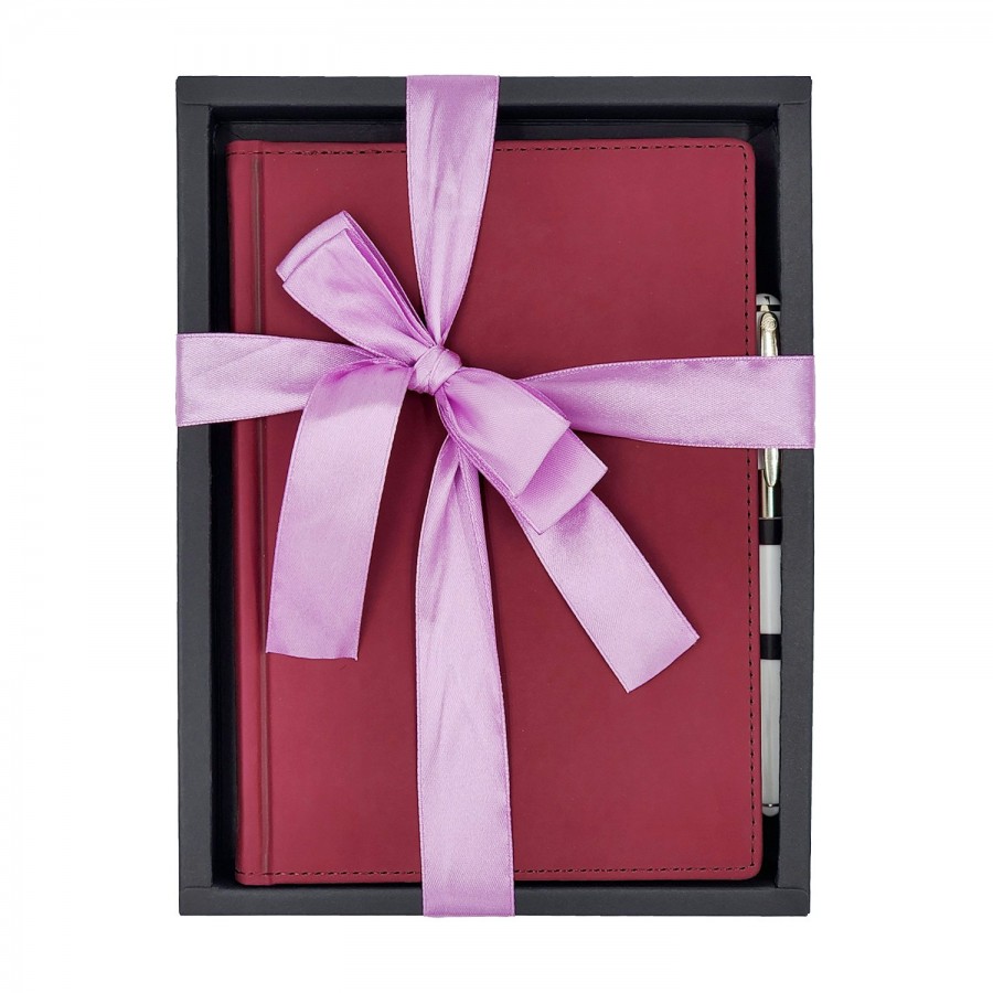 Набор подарочный ежедневник недатированный А5 136 листов, линия, твердая обложка, кожзам Velvet темно-розовый + ручка 3-115/38-2 Bruno Visconti