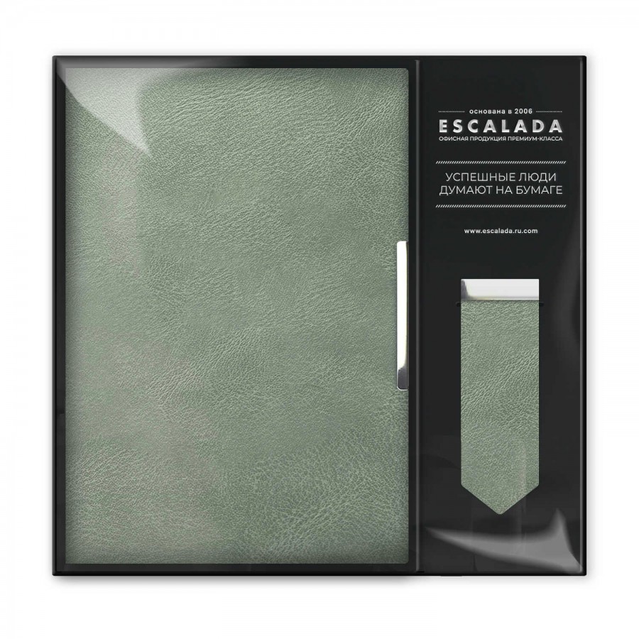 Ежедневник недатированный + закладка д/книг (набор подарочный) ESCALADA, А5, 120 л., арт. 70565/ 10 БАКСТЕР ОЛИВКОВЫЙ (кожзам: 146х211; 35х100 мм, мягкий переплёт, запаянный край, материал обложки: искусственная кожа "Бакстер"; способ крепления блока: ниткошвейный; декор: металлический шильд по краю обложки; вн. блок: 120 л., кремовый офсет 70 г/м?, печать в одну краску (линия), справочный материал: есть; перфорация углов блока: нет; отделка среза: окрашивание пантоном; закладка/-и: два ляссе, каптал: есть; форзац: печать пантоном, персонализация возможна: да; индивидуальная упаковка: подарочная картонная коробка с ПВХ-крышкой + ПЭТ-пакет)