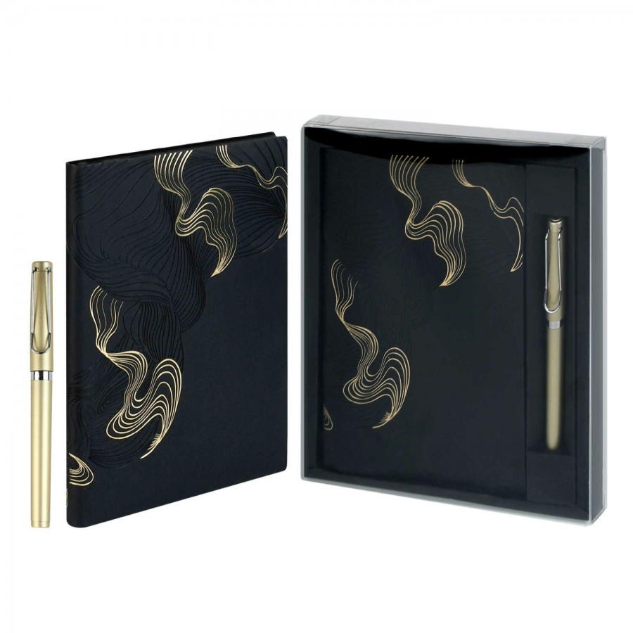 Набор подарочный Ежедневник недатированный А5 146х211 120 листов, линия, мягкая обложка, Escalada, кожзам Виннер черный, 2 ляссе, 70 г/м2 + ручка шариковая 70561 Феникс 10/20