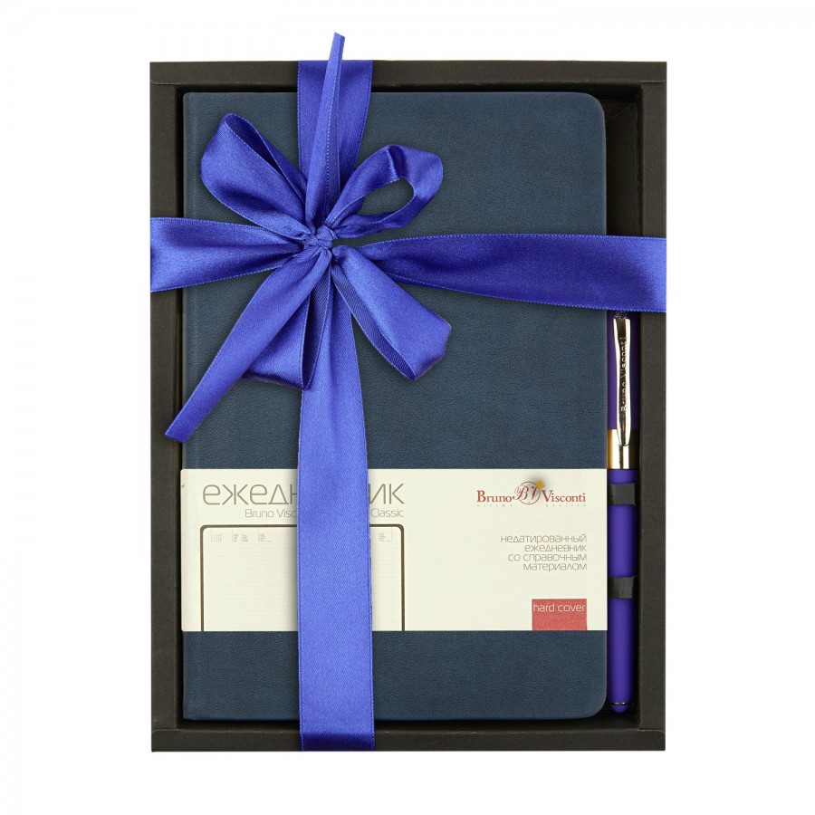 Набор подарочный Ежедневник недатированный А5 96 листов линия кожзам Megapolis classic темно-синий + ручка шариковая 3-787/06-2 Bruno Visconti