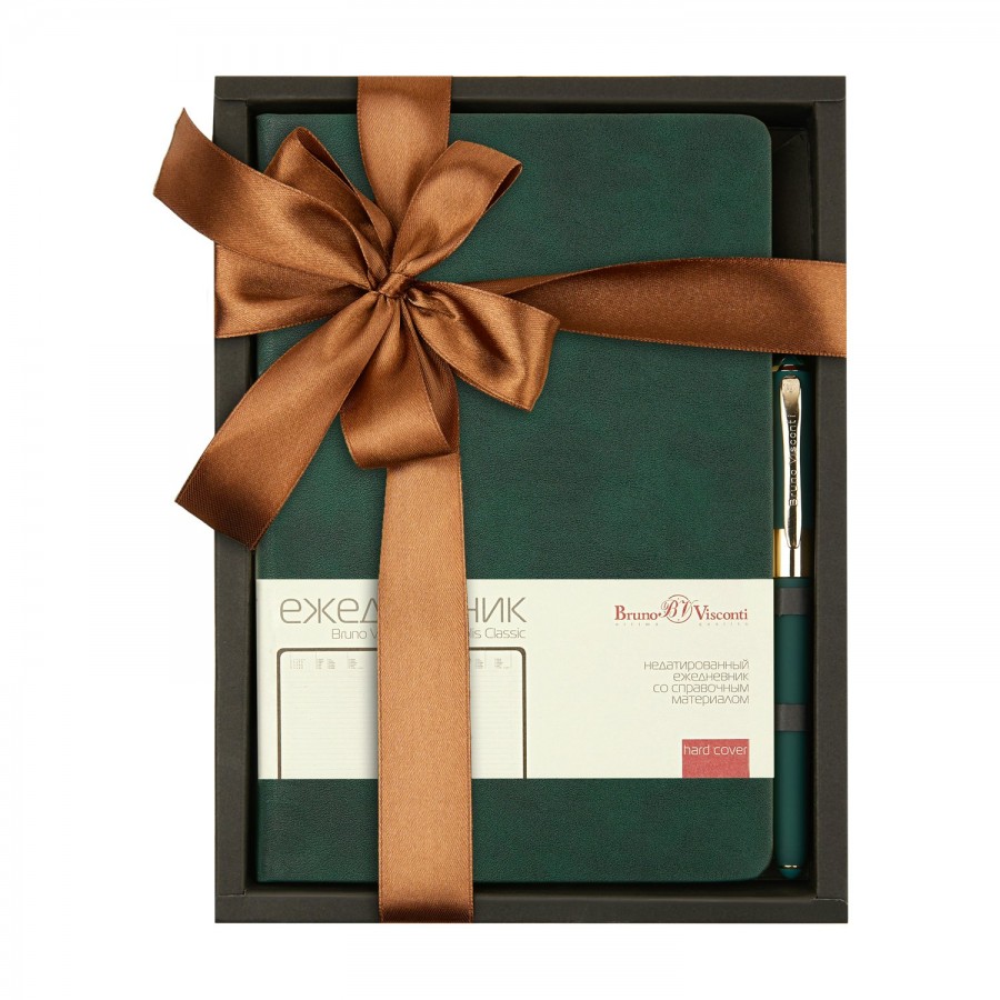 Набор подарочный Ежедневник недатированный А5 96 листов линия кожзам Megapolis classic темно-зеленый + ручка шариковая 3-787/08-2 Bruno Visconti