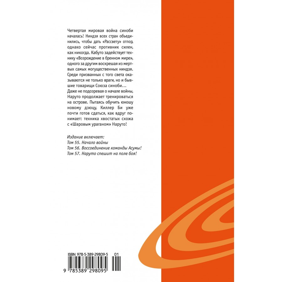 «Наруто» – один из лучших манга-сериалов современности наряду с «One Piece. Большой куш»! В 19 книгу вошли 55-57 тома, в которых объединенные войска синоби вступают в войну с «Рассветом», а Наруто осваивает новую технику хвостатых под руководством Киллера Би.