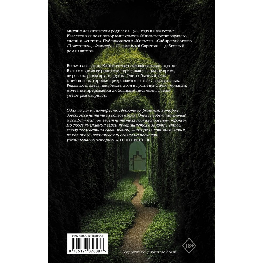 - Сюрреалистичное путешествие в провинциальныи? город, где магия переплетается с реальностью. История любовных метании?, родительских переживании? и неожиданных поворотов судьбы, написанная поэтически и с ноткой симпатичного кэрролловского безумия.