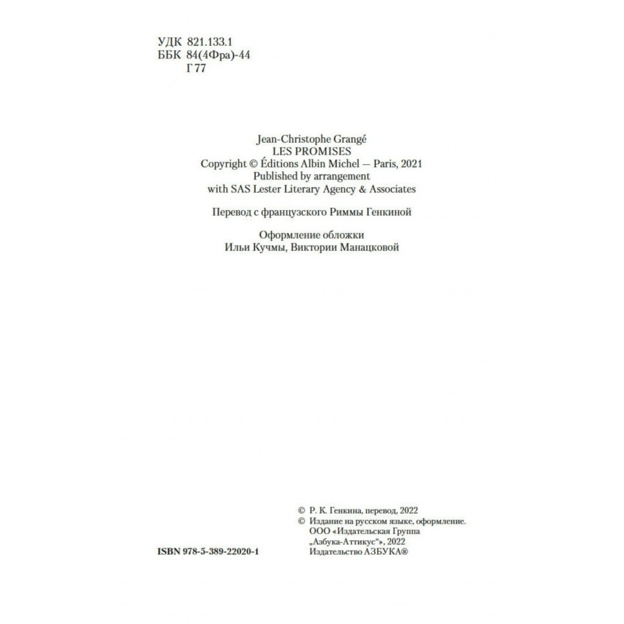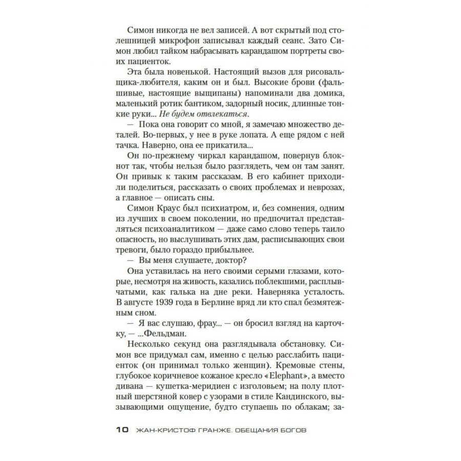В своем романе «Обещания богов» признанный мэтр европейского детектива, обладатель многочисленных престижных премий Жан-Кристоф Гранже обращается к новому для себя жанру исторического триллера — и едва ли этот неустрашимый исследователь зла мог найти более подходящие декорации. Жертвы и палачи, которые стоят друг друга, всепроникающая паранойя и разгадка, которая никому не могла привидеться и в страшном сне, — Гранже раскрывает весь ужас человеческой природы, изуродованной невыносимыми обстоятельствами.