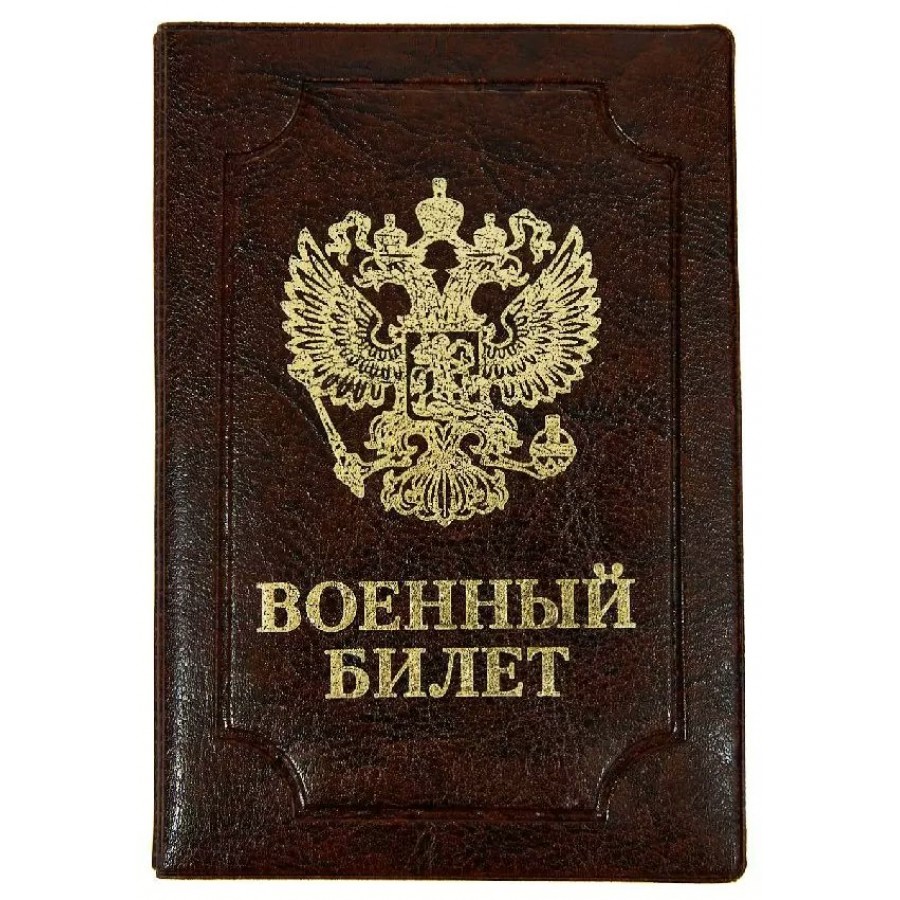 Обложка для военного билета из искусственной кожи, выполнена в коричневом цвете. На лицевой стороне методом тиснения золотой фольгой нанесено изображение герба Российской Федерации и надпись "ВОЕННЫЙ БИЛЕТ".... Читать далее...