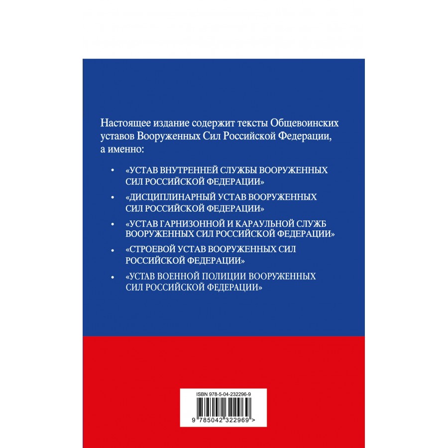 Настоящее издание содержит тексты Общевоинских уставов Вооруженных Сил Российской Федерации и Устав военной полиции Вооруженных Сил Российской Федерации.