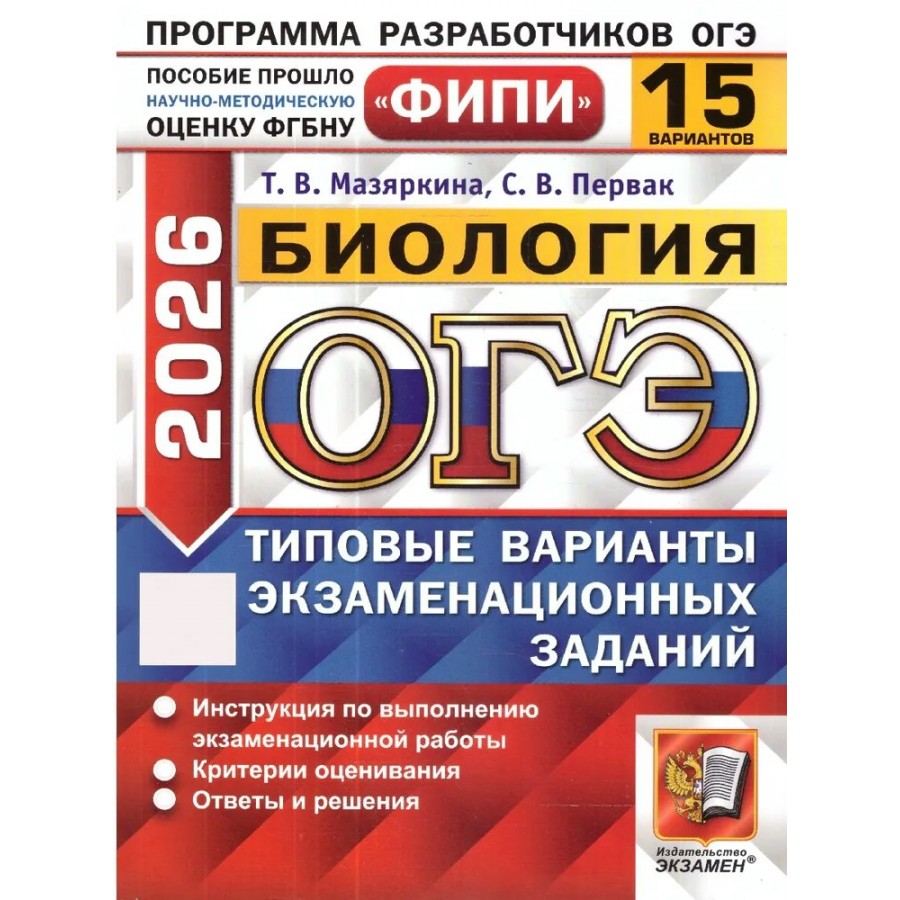 ОГЭ 2026. Биология. Типовые варинаты экзаменационных заданий. 15 вариантов. Самостоятельные работы. Мазяркина Т.В. Экзамен