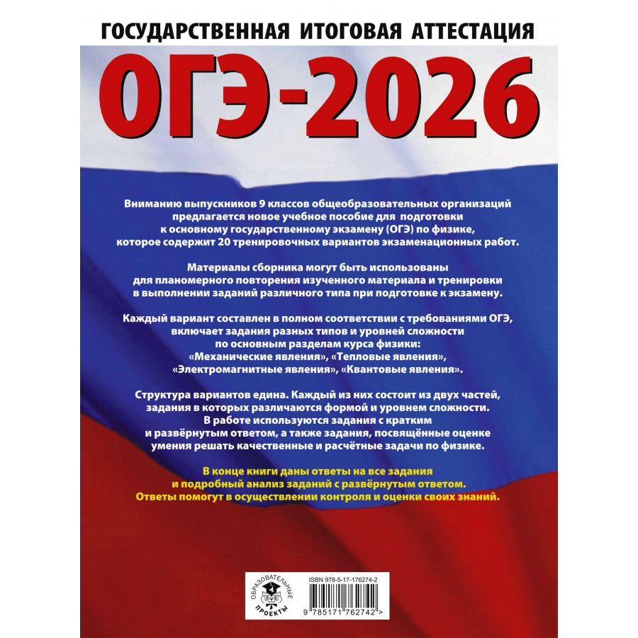 ОГЭ-2026. Физика. 20 тренировочных вариантов экзаменационных работ для подготовки к основному государственному экзамену. Тренажер. Слепнева Н.И. АСТ