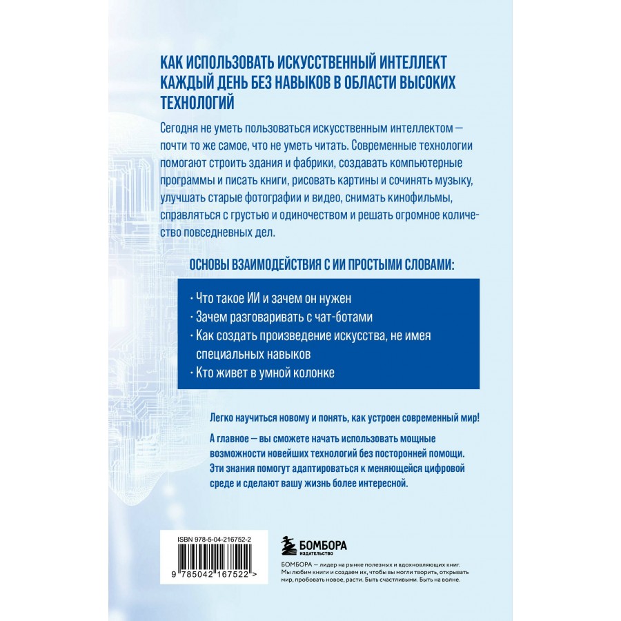 Сегодня не уметь пользоваться искусственным интеллектом — почти то же самое, что не уметь читать. Современные технологии помогают строить здания и фабрики, создавать компьютерные программы и писать книги, рисовать картины и сочинять музыку, улучшать старые фотографии и видео, снимать кинофильмы, справляться с грустью и одиночеством и решать огромное количество повседневных дел.
