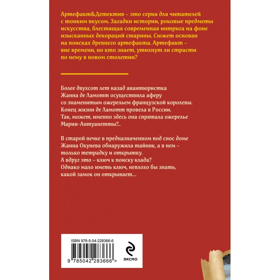 Более двухсот лет назад авантюристка Жанна де Ламотт осуществила аферу со знаменитым ожерельем французской королевы. Конец жизни де Ламотт встретила в России. Так, может, именно здесь она спрятала ожерелье Марии-Антуанетты?.. Жанна Окунева обнаружила тайник в старой печке в предназначенном под снос доме, там были лишь тетрадка и открытка. А вдруг это — ключ к поиску клада? Однако мало иметь ключ, неплохо бы знать, какой замок он открывает...