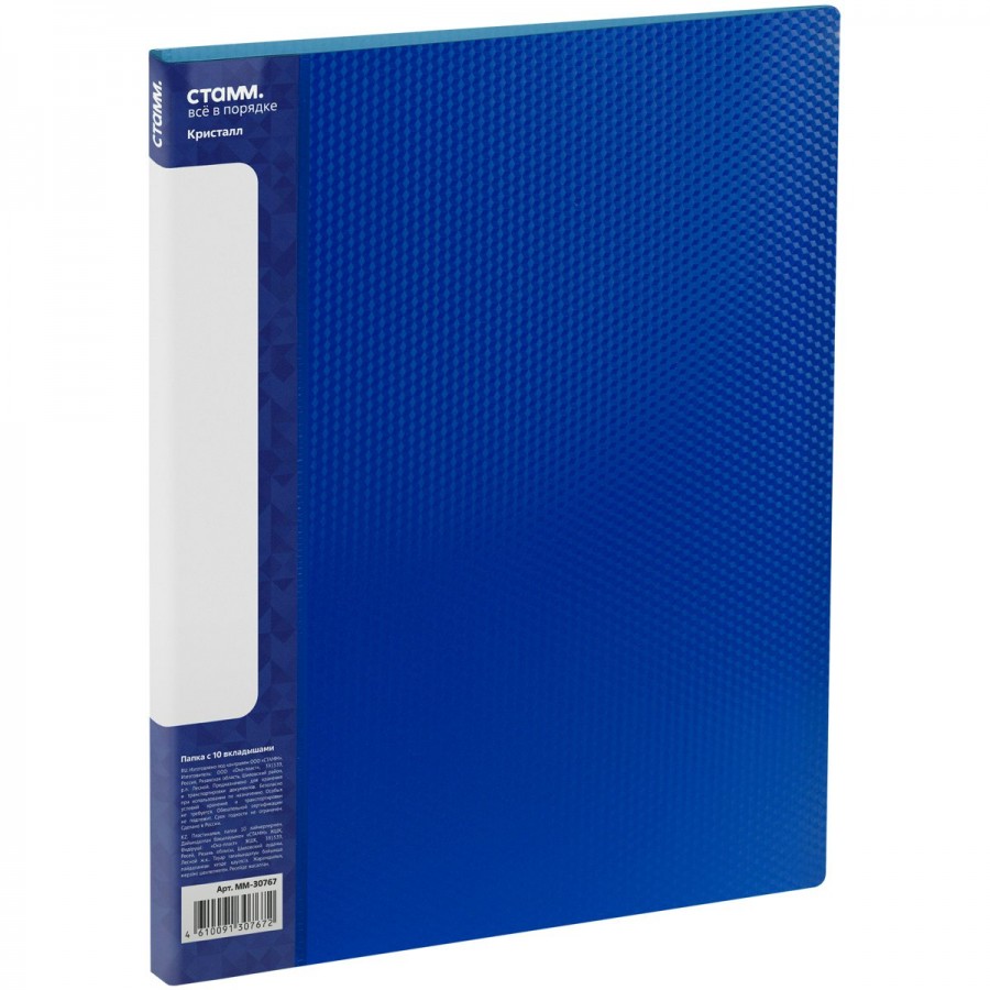Папка 10 вкладышей А4 9мм 600мкм Кристалл синяя ММ-30767 Стамм 355705