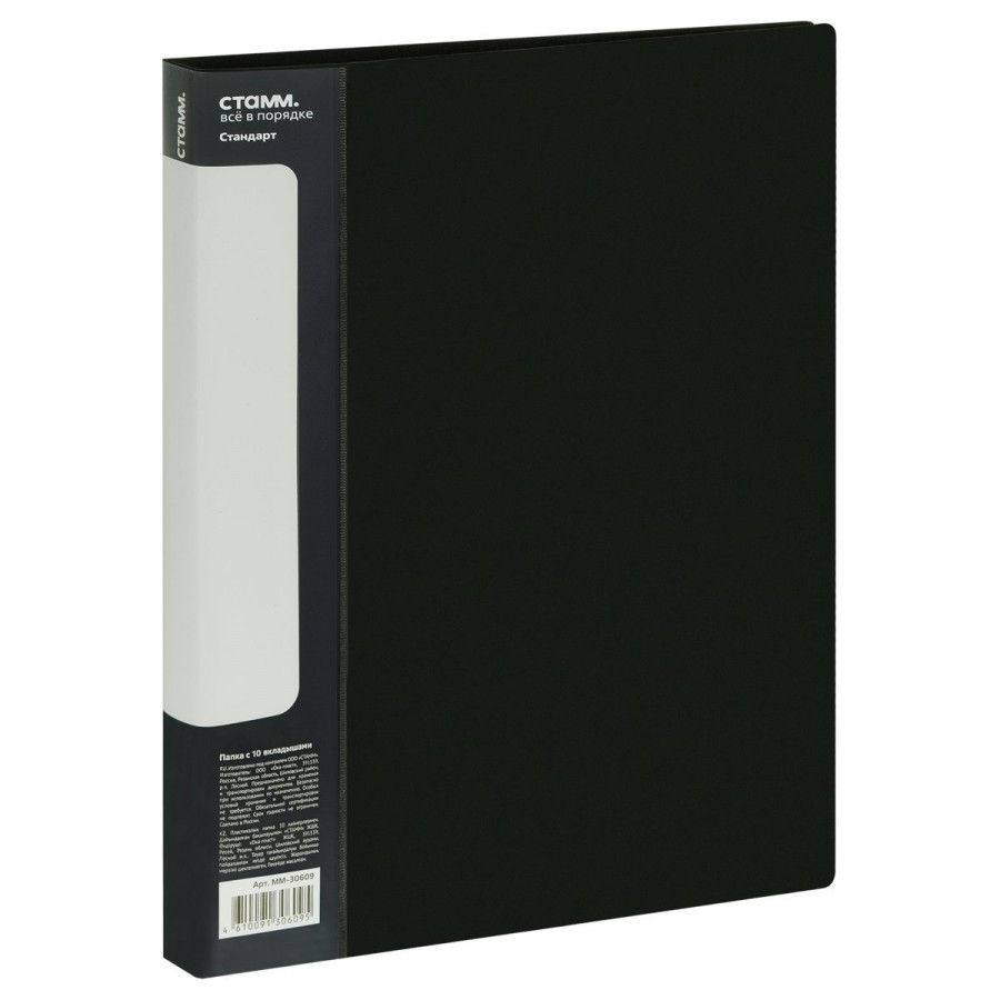 Папка 10 вкладышей А4 9мм 600мкм Стандарт черная ММ-30609 Стамм 355295