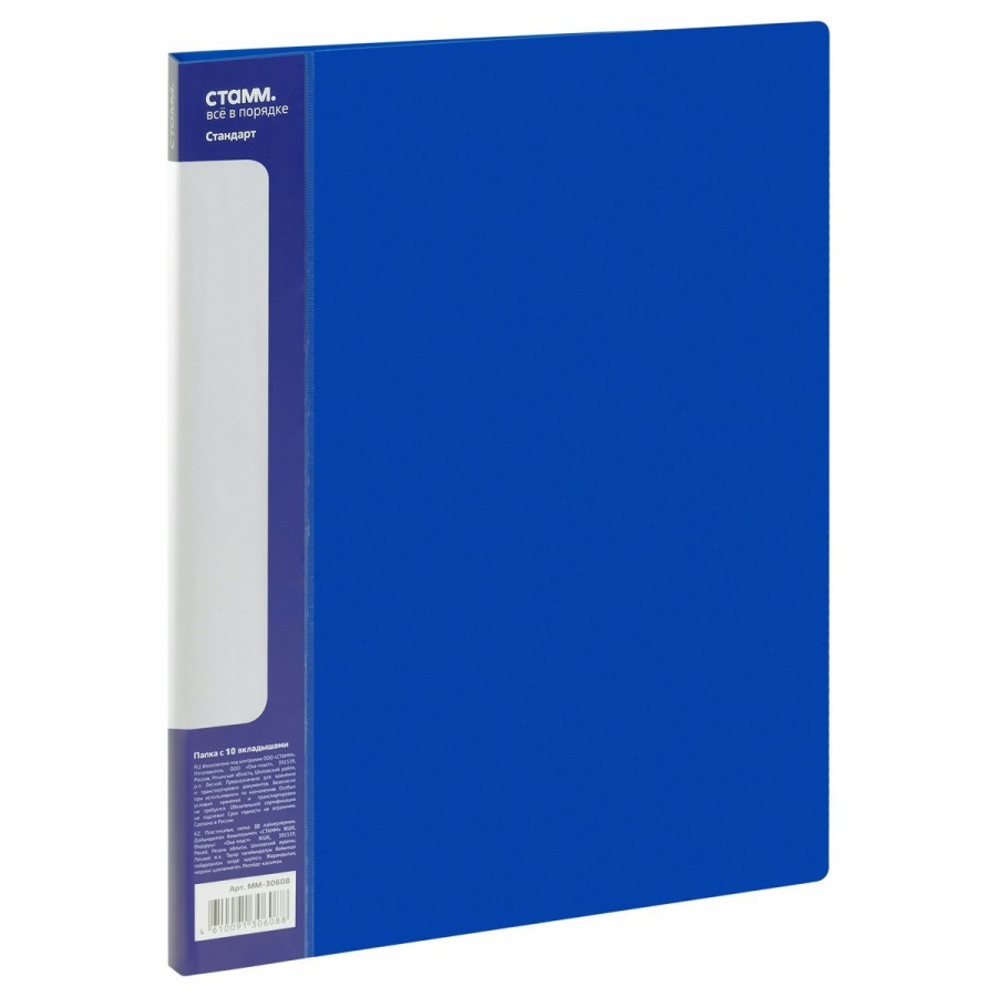 Папка 10 вкладышей А4 9мм 600мкм Стандарт синяя ММ-30608 Стамм 355294