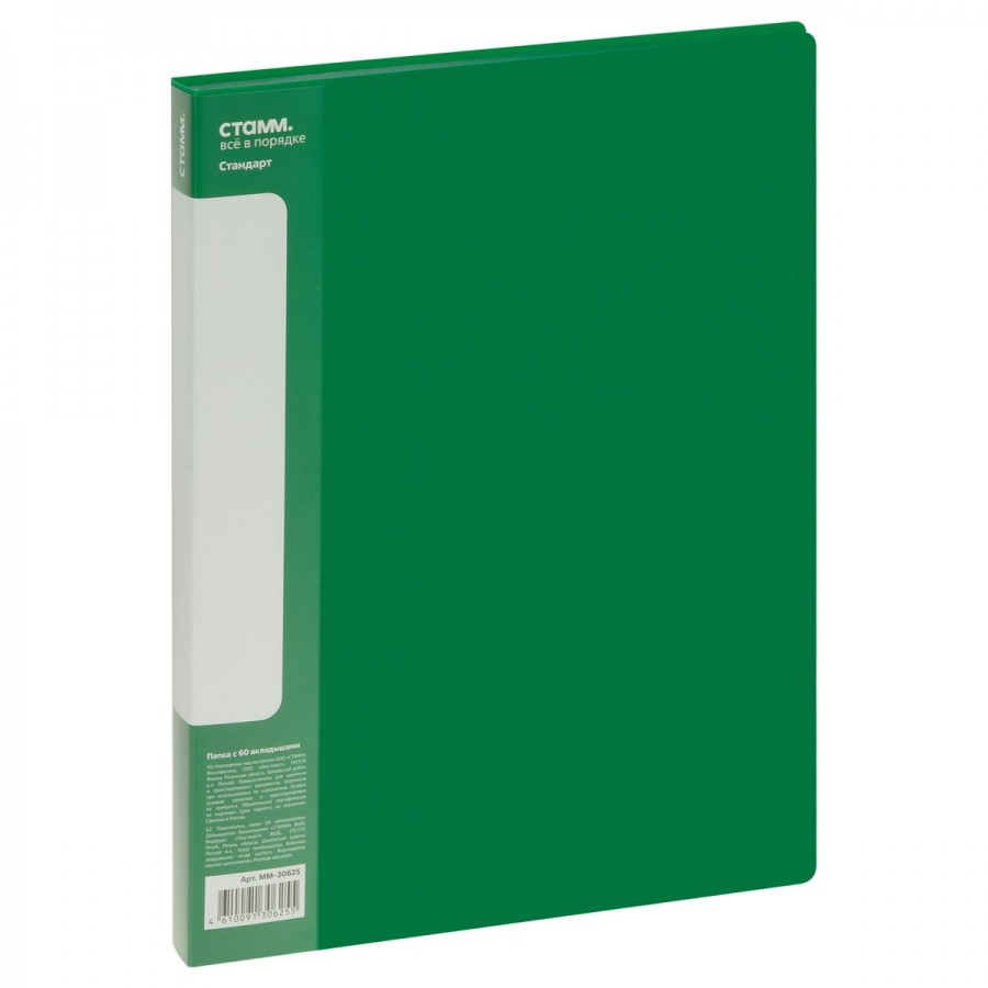 Папка 60 вкладышей А4 21мм 700мкм Стандарт зеленая ММ-30625 Стамм 355311