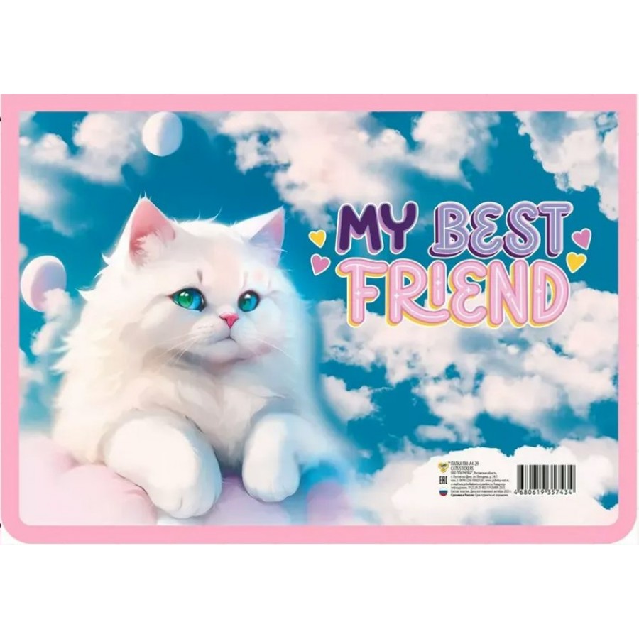 Папка для тетрадей А4 32,5х23см пластиковая на молнии Котик в облаках расширение 5,5см ПМ-А4-29 Пчелка