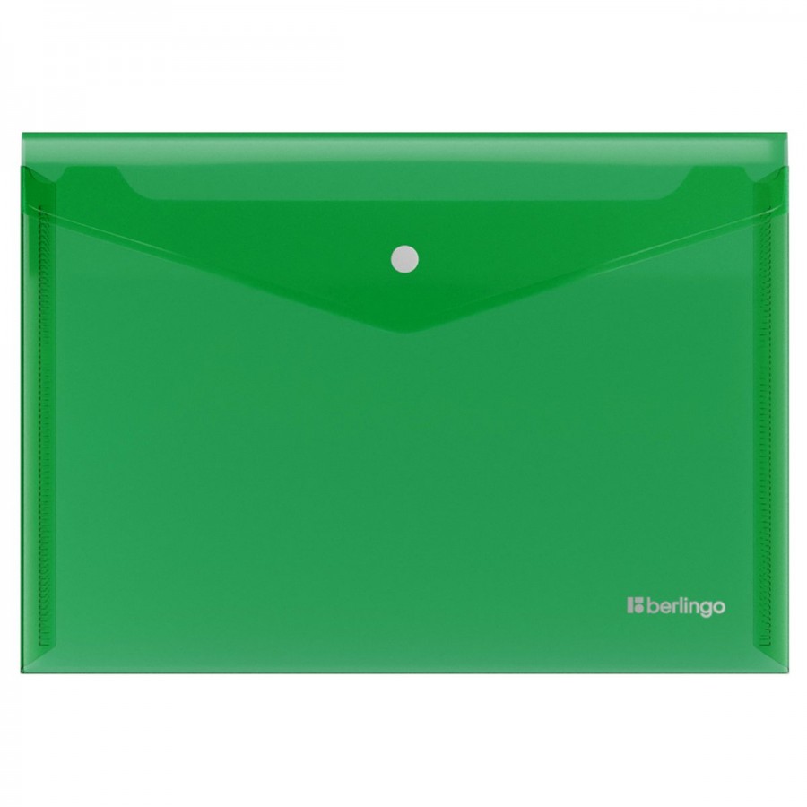 Папка-конверт на кнопке Berlingo No Secret формата А4 (333*236 мм) предназначена для хранения документов и вмещает до 120 листов. Изготовлена из высококачественного полипропилена плотностью 200 мкм с глянцевой текстурой поверхности. Папка плотно закрывается на надёжную застёжку-кнопку, которая рассчитана на ежедневное использование и защищает документы от повреждений и загрязнений и станет отличным помощником в учёбе и работе. Насыщенный зелёный цвет в сочетании с белой контрастной кнопкой и серебристым логотипом. Полупрозрачная поверхность.