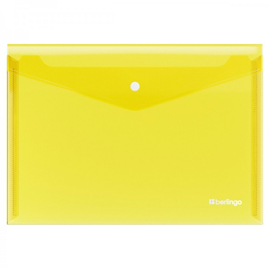 Папка-конверт на кнопке Berlingo No Secret формата А4 (333*236 мм) предназначена для хранения документов и вмещает до 120 листов. Изготовлена из высококачественного полипропилена плотностью 200 мкм с глянцевой текстурой поверхности. Папка плотно закрывается на надёжную застёжку-кнопку, которая рассчитана на ежедневное использование и защищает документы от повреждений и загрязнений и станет отличным помощником в учёбе и работе. Насыщенный жёлтый цвет в сочетании с белой контрастной кнопкой и серебристым логотипом. Полупрозрачная поверхность.