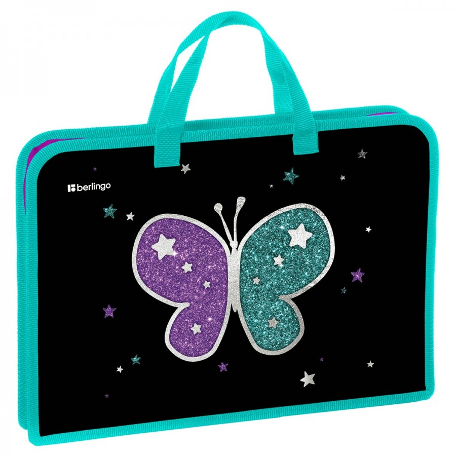 Папка на молнии А4 340х245х40мм Shining butterfly 1 отделение, с ручками, пластик BR-PT-A44001 Berlingo 366351