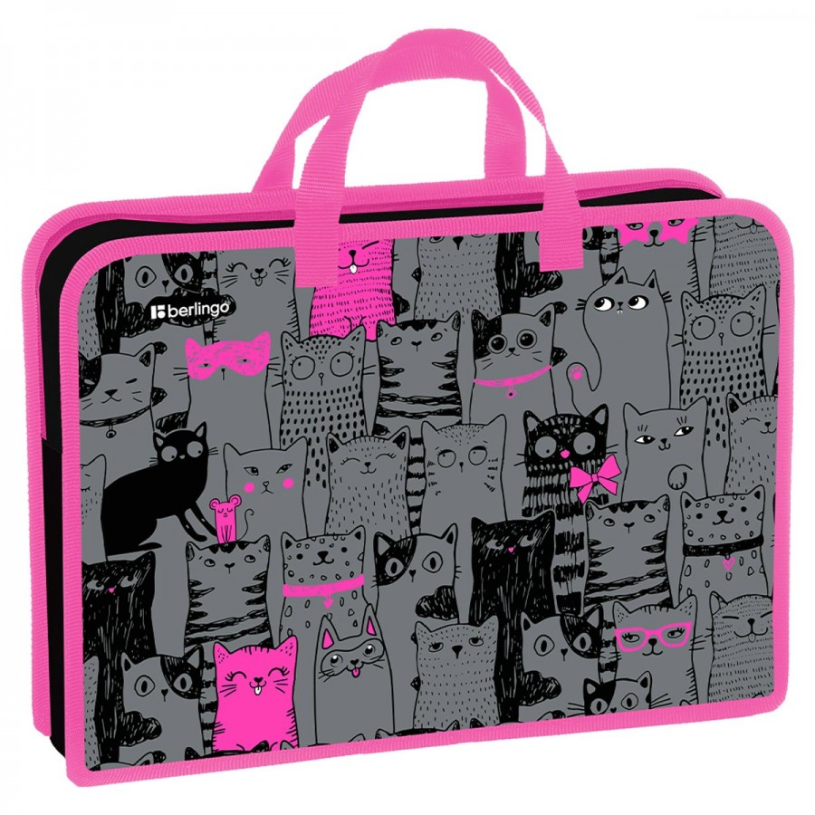 Папка на молнии А4 340х245х75мм Happy Cats 1 отделение, с ручками, пластик BR-PT-A47517 Berlingo 379350