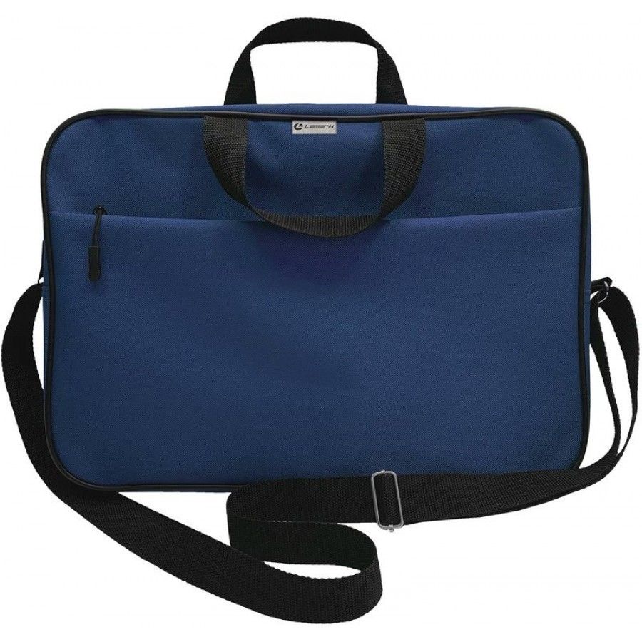 Папка-портфель Lamark на молнии, с ручками, карман снаружи на молнии, усиленное дно, наплечный регулируемый ремень. Плотная ткань с водоотталкивающей пропиткой ПВХ, цвет синий. Легко моется, быстро сохнет. Одноцветный кант придает жесткость. Размер изделия: 39х27х8 см. Широкое применение: для торговых представителей, студентов, менеджеров.