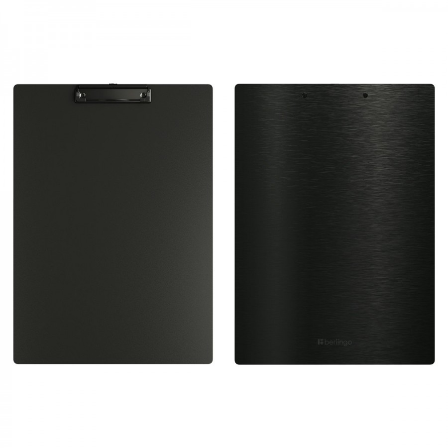 Лицевая сторона оформлена в чёрном цвете, обратная — с текстурой «под сталь», которая подчёркивает сдержанный и аккуратный внешний вид изделия. Металлический зажим надёжно фиксирует документы, не повреждая края листов. Планшет подходит для работы с бумагами формата А3 как на весу, так и на рабочей поверхности.