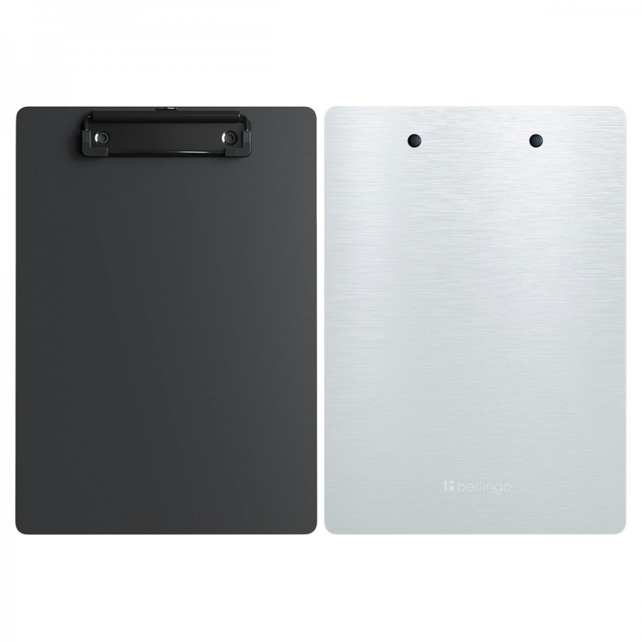 Прочный стильный планшет с зажимом Berlingo серии Steel&Style формата А5+ позволяет удобно делать записи на весу. Планшет изготовлен из полифома толщиной 2500 мкм. Вмещает 100 листов. Планшет имеет насыщенный белый цвет оборотной стороны в сочетании с фактурой "сталь" и чёрный цвет внутренней поверхности с чёрным прижимом. Металлический зажим надёжно фиксирует документы, не повреждая их. Размер планшета с зажимом - 250*175 мм. Упакован в индивидуальный пакет с липким краем.