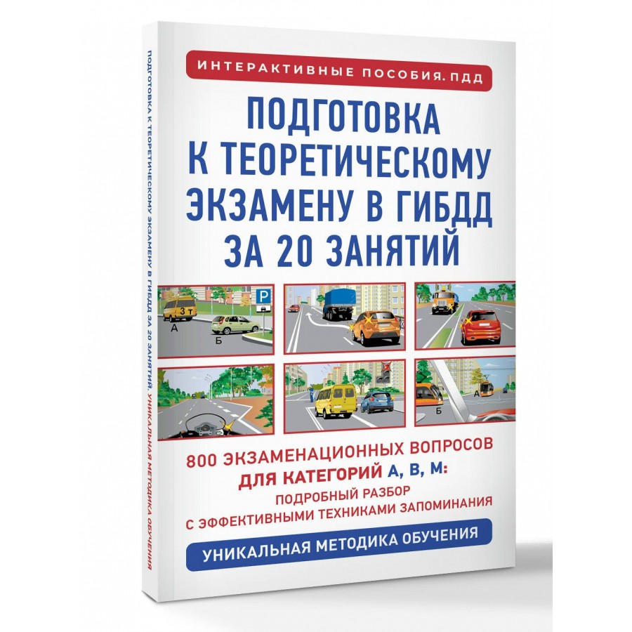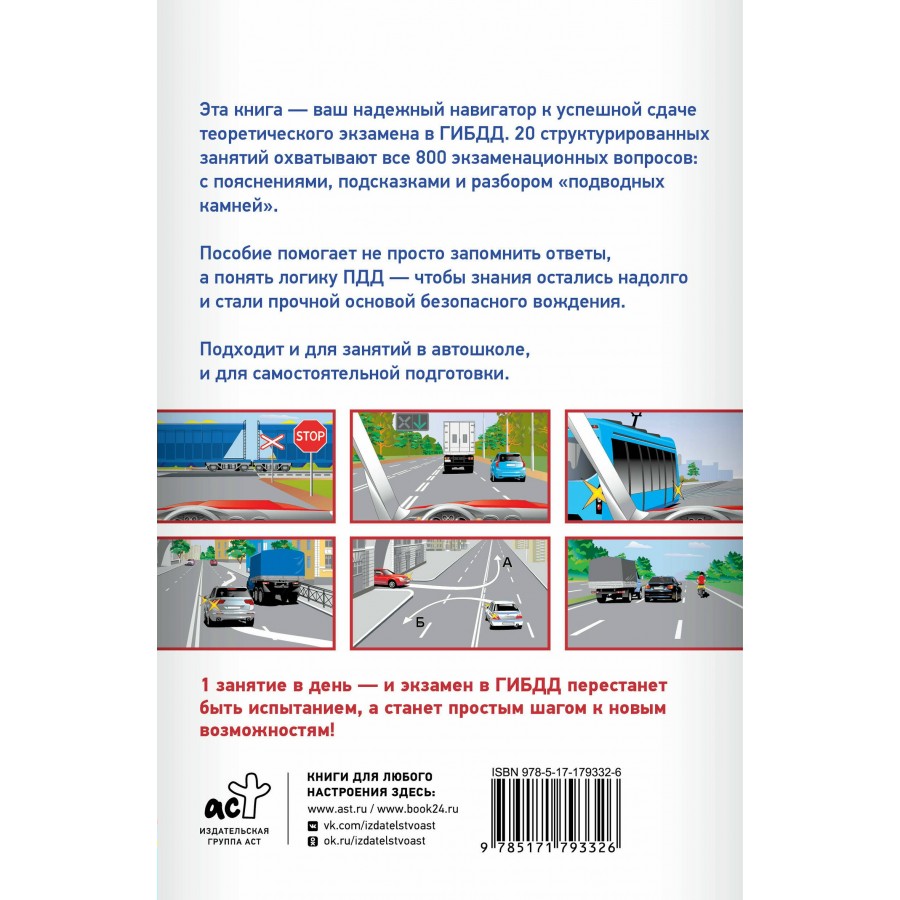 Эта книга — ваш надежный навигатор к успешной сдаче теоретического экзамена в ГИБДД. 20 структурированных занятий охватывают все 800 экзаменационных вопросов: с пояснениями, подсказками и разбором "подводных камней". Пособие помогает не просто запомнить ответы, а понять логику ПДД — чтобы знания остались надолго и стали прочной основой безопасного вождения.