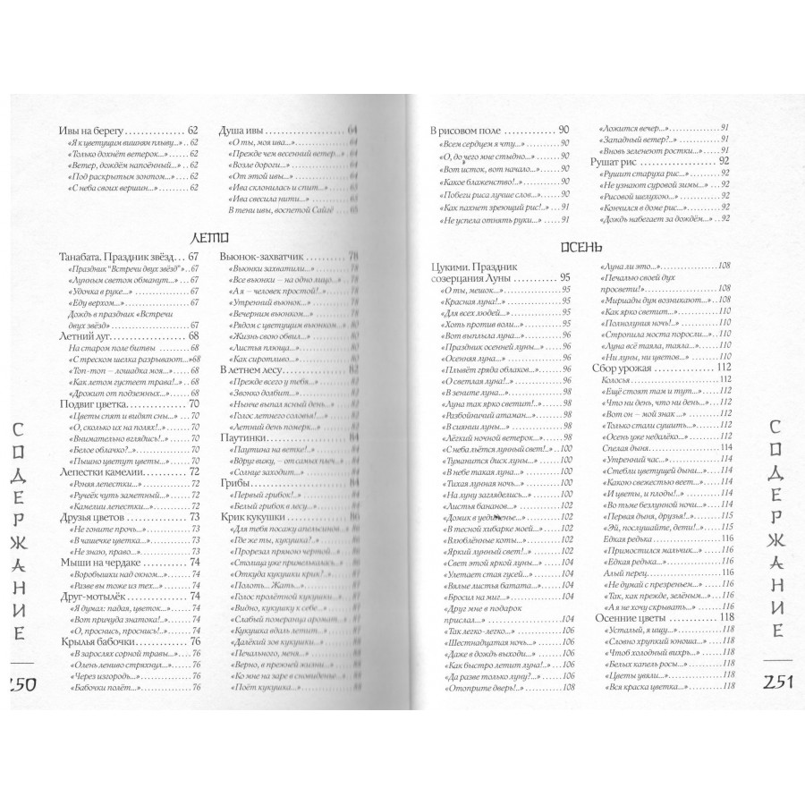 Эта книга – поэтическое путешествие по Японии, в ходе которого читатель поднимется на вершины священных гор и заглянет в рыбацкую харчевню у моря, полюбуется Луной 16-ой ночи и цветением сакуры, послушает колокольный звон, крик кукушки и плач оленя, поучаствует в ловле сверчков и сборе урожая риса, узнает тайну легендарного камня лисицы, побывает на праздниках Первого дня Змеи, Встречи двух звёзд, Ханами, Танабата и Цукими, попробует вино с лепестками хризантем и по достоинству оценит красоту всех времён года. Более 630 хокку 90 японских классиков в переводах Н. Азбелева, К. Бальмонта, А. Бранта, В. Марковой, В. Март, В. Мендрина, Н. Новича, А. Пресс, Г. Рачинского, П. Сухотина и М. Ямагучи, проиллюстрированные 125 старинными японскими картинами и гравюрами, откроют читателю двери в удивительный мир японского мироощущения и созерцания.