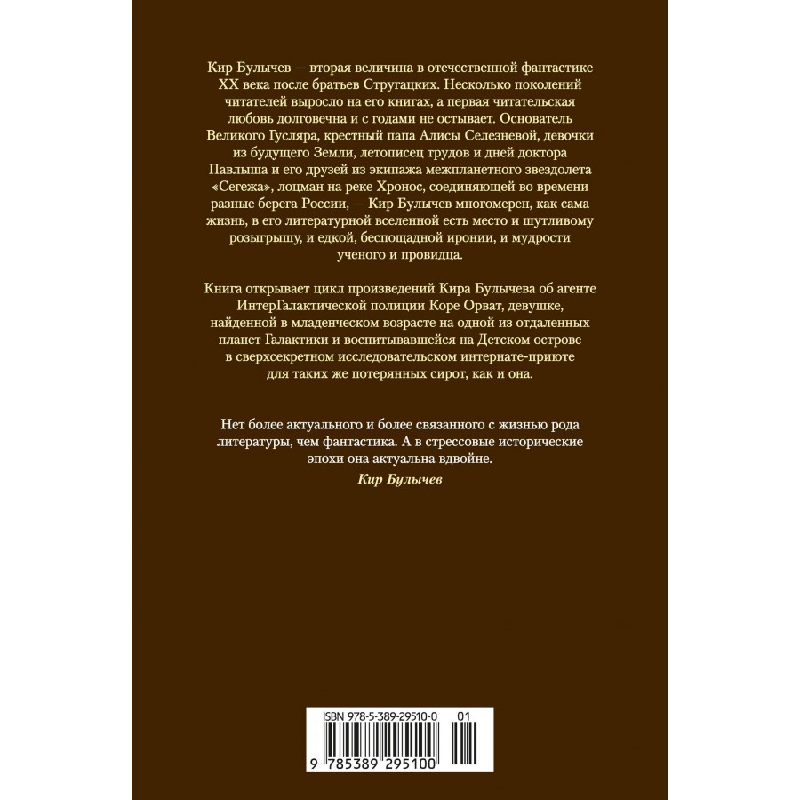Книга открывает цикл произведений Кира Булычева об агенте ИнтерГалактической полиции Коре Орват, девушки, найденной в младенческом возрасте на одной из отдаленных планет Галактики и воспитывавшейся на Детском острове в сверхсекретном исследовательском интернате-приюте для таких же потерянных сирот, как и она.