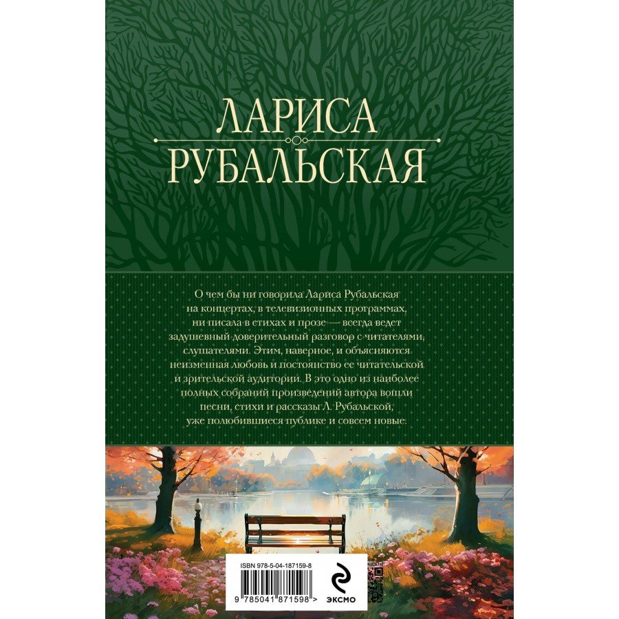 Лариса Рубальская, о чем бы ни говорила на концертах, в телевизионных программах, ни писала в стихах и прозе, — всегда ведет задушевный доверительный разговор с читателями, слушателями. Этим, наверное, и объясняются неизменная любовь и постоянство ее читательской и зрительской аудитории. В это одно из наиболее полных собраний произведений автора вошли песни, стихи и рассказы Л. Рубальской, уже полюбившиеся публике и совсем новые.