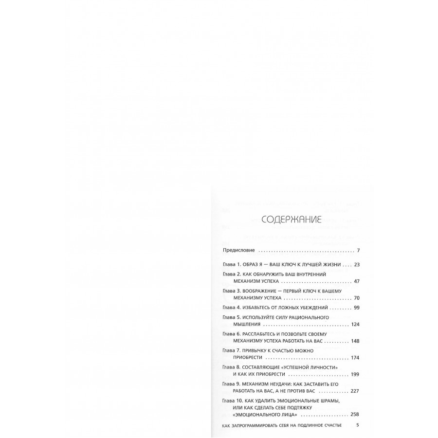 Мольцу не раз попадались пациенты, которые даже после удачной операции продолжали считать себя уродливыми. Это ощущение сидело глубоко внутри и не давало им вести полноценную жизнь. Миллионы людей влачат жалкое существование, неосознанно бегут от любви, терпят неудачу за неудачей только потому, что это подразумевает их образ Я. Эта книга — полное руководство по коррекции представлений о себе.