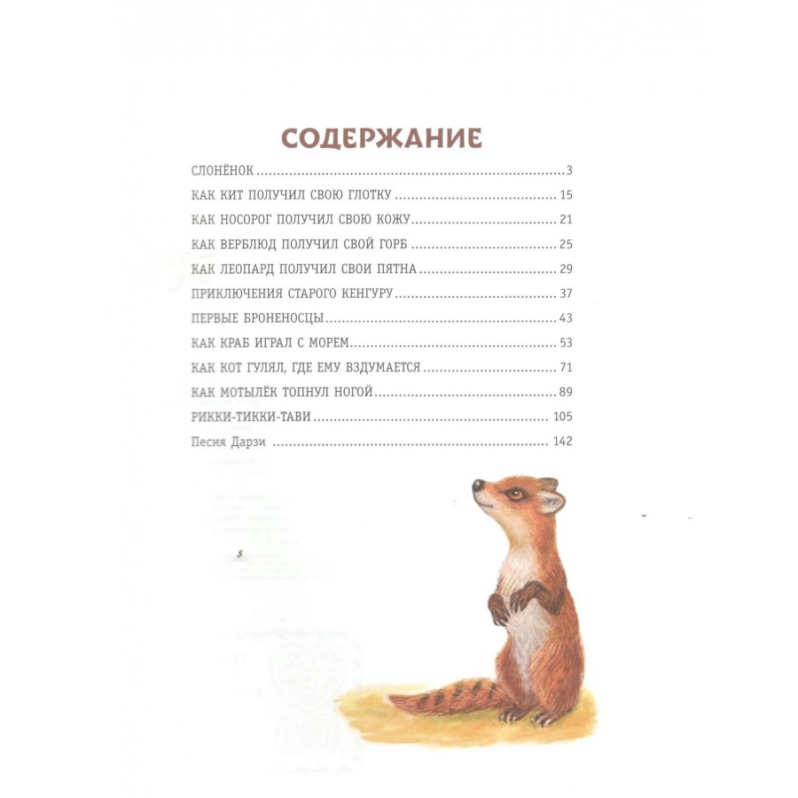 Перед вами сборник сказок английского писателя, автора всемирно известных рассказов о Маугли — Редьярда Киплинга. В эту книгу вошли любимые многими поколениями 11 историй о животных. Здесь вы встретите и отважного мангуста Рикки-Тикки-Тави, который не боится вступить в бой с коварной коброй; и любопытного слонёнка с его тысячей неуёмных вопросов об этом мире; и первого кота, ставшего домашним исключительно по своей воле! А также на страницах сборника благодаря цветным выразительным иллюстрациям Ксении Павловой оживают даже первые броненосцы и другие удивительные животные.