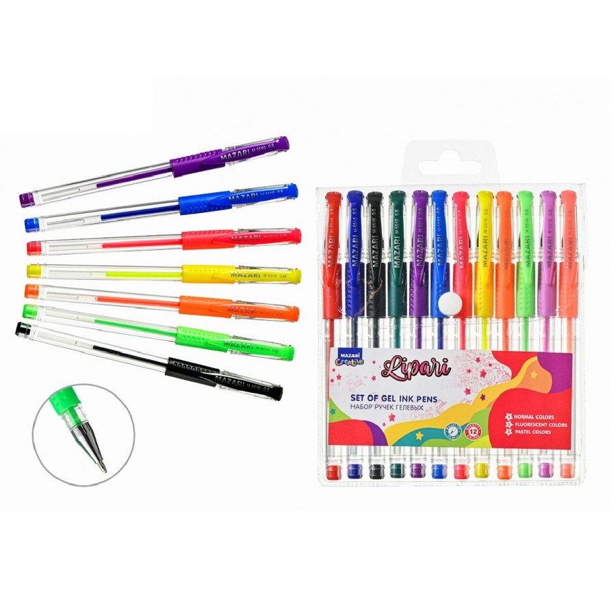 Ручка гелевая Набор 12 цветов Lipari 4 основных цвета, 5 флуоресцентных цветов, 3 цвета пастель, 0,8мм M-5510-12 Mazari 12/96
