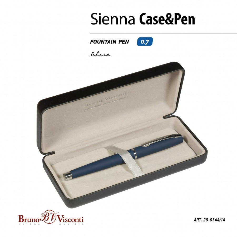 Ручка подарочная перьевая Sienna синяя 0,7мм металлический синий корпус, черный футляр 20-0344-14 Bruno Visconti