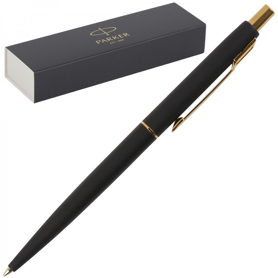 Материал ручки выполнен из нержавеющей стали. Вид нанесения отделки - матовый лак черного цвета, гальваническое покрытие из золота, выгравированный логотип PARKER на корпусе ручки.... Читать далее...