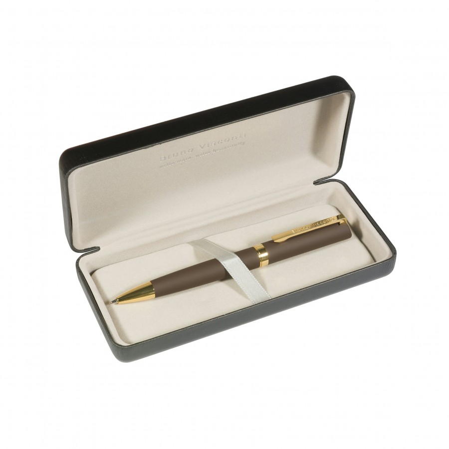 Ручка подарочная шариковая, поворотный механизм Milano синяя 1мм металлический коричневый корпус, черный футляр 20-0402-14 Bruno Visconti