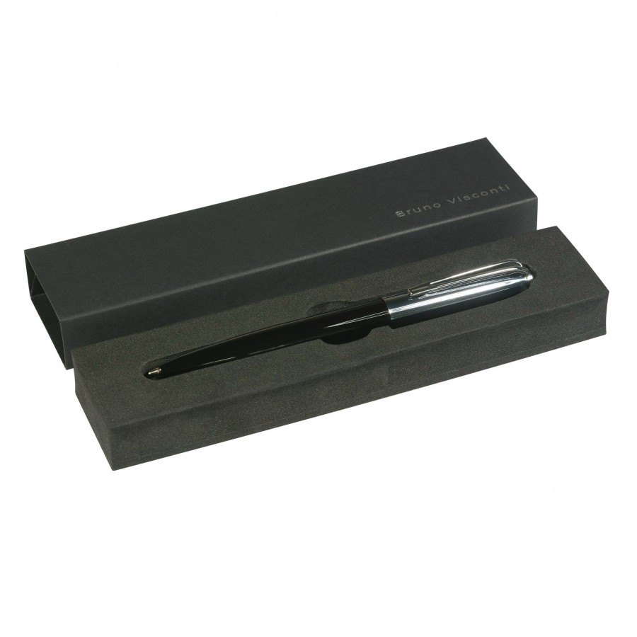 Ручка подарочная шариковая, поворотный механизм Napoli синяя 1мм корпус черный и серебро металлический, черный футляр 20-0383-03/09 Bruno Visconti