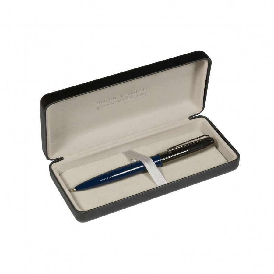 Ручка подарочная шариковая, поворотный механизм Napoli синяя, 1мм, металлический синий корпус, черный футляр 20-0383/02-14 Bruno Visconti