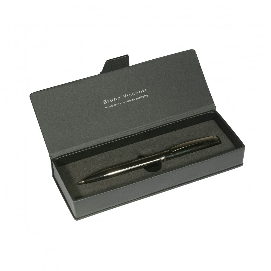 Ручка подарочная шариковая, поворотный механизм Portofino синяя, 1мм, металлический черный корпус, черный футляр 20-0251-08/08 Bruno Visconti